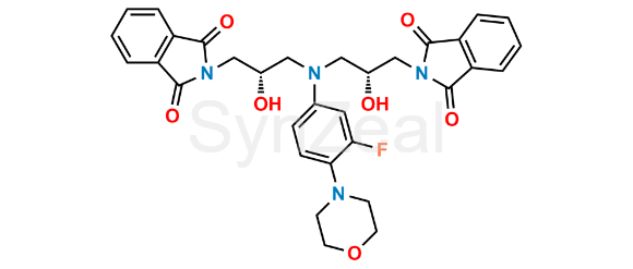 Linezolid Impurity 16 (Linezolid Diphthalimide) is chemically 2,2’-(3,3’-(3-Fluoro-4-morpholinophenylazanediyl)bis(2-hydroxypropane-3,1-diyl))diidoindoline-1,3-dione . It is also known as Linezolid Diphthalimide. Linezolid Impurity 16 (Linezolid Diphthalimide) is supplied with detailed characterization data compliant with regulatory guideline. Linezolid Impurity 16 (Linezolid Diphthalimide) can be used for the analytical method development, method validation (AMV), Quality Controlled (QC) application for Abbreviated New Drug Application (ANDA) or during commercial production of Linezolid.
