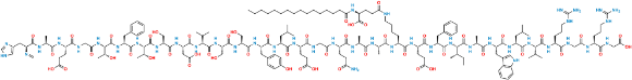 Smiles: O=C(O)CNC([C@H](CCCNC(N)=N)NC(CNC([C@H](CCCNC(N)=N)NC([C@H](C(C)C)NC([C@H](CC(C)C)NC([C@H](CC1=CNC2=C1C=CC=C2)NC([C@H](C)NC([C@H]([C@@H](C)CC)NC([C@H](CC3=CC=CC=C3)NC([C@H](CCC(O)=O)NC([C@H](CCCCNC(CC[C@@H](C(O)=O)NC(CCCCCCCCCCCCCCC)=O)=O)NC([C@H](C)NC([C@H](C)NC([C@H](CCC(N)=O)NC(CNC([C@H](CCC(O)=O)NC([C@H](CC(C)C)NC([C@H](CC4=CC=C(O)C=C4)NC([C@H](CO)NC([C@H](CO)NC([C@H](C(C)C)NC([C@H](CC(O)=O)NC([C@H](CO)NC([C@H]([C@H](O)C)NC([C@H](CC5=CC=CC=C5)NC([C@H]([C@H](O)C)NC(CNC([C@H](CCC(O)=O)NC([C@H](C)NC([C@H](CC6=CNC=N6)N=C)=O)=O)=O)=O)=O)=O)=O)=O)=O)=O)=O)=O)=O)=O)=O)=O)=O)=O)=O)=O)=O)=O)=O)=O)=O)=O)=O)=O)=O)=O