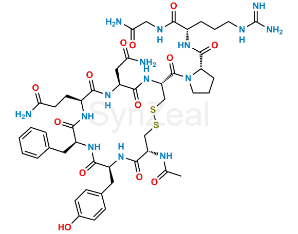 N-Acetyl Vasopressin is chemically (S)-1-((4R,7S,10S,13S,16S,19R)-19-Acetamido-7-(2-amino-2-oxoethyl)-10-(3-amino-3-oxopropyl)-13-benzyl-16-(4-hydroxybenzyl)-6,9,12,15,18-pentaoxo-1,2-dithia-5,8,11,14,17-pentaazacycloicosane-4-carbonyl)-N-((S)-1-((2-amino-2-oxoethyl)amino)-5-guanidino-1-oxopentan-2-yl)pyrrolidine-2-carboxamide. N-Acetyl Vasopressin is supplied with detailed characterization data compliant with regulatory guideline. N-Acetyl Vasopressin can be used for the analytical method development, method validation (AMV), Quality Controlled (QC) application for Abbreviated New Drug Application (ANDA) or during commercial production of Vasopressin.