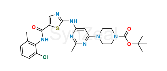 N-Boc-N-deshydroxyethyl Dasatinib is chemically Tert-butyl 4-(6-((5-((2-chloro-6-methylphenyl)carbamoyl)thiazol-2-yl)amino)-2-methylpyrimidin-4-yl)piperazine-1-carboxylate. It is also known as N-Boc-N-deshydroxyethyl Dasatinib . N-Boc-N-deshydroxyethyl Dasatinib is supplied with detailed characterization data compliant with regulatory guideline. N-Boc-N-deshydroxyethyl Dasatinib can be used for the analytical method development, method validation (AMV), Quality Controlled (QC) application for Abbreviated New Drug Application (ANDA) or during commercial production of Dasatinib.