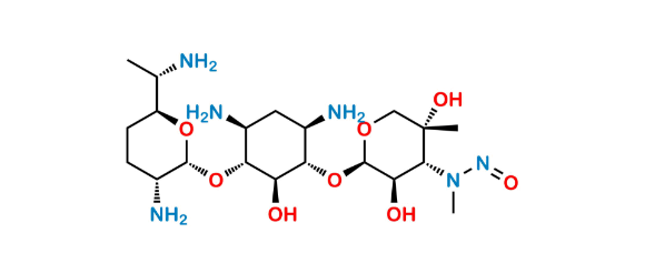 Chemical Name: N-((2R,3R,4R,5R)-2-(((1S,2S,3R,4S,6R)-4,6-diamino-3-(((2R,3R,6S)-3-amino-6-((S)-1-aminoethyl)tetrahydro-2H-pyran-2-yl)oxy)-2-hydroxycyclohexyl)oxy)-3,5-dihydroxy-5-methyltetrahydro-2H-pyran-4-yl)-N-methylnitrous amide