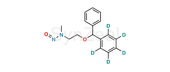 N-Nitroso N-Desmethyl Diphenhydramine-D5 is chemically N-Methyl-N-(2-(phenyl(phenyl-d5)methoxy)ethyl)nitrous amide. N-Nitroso N-Desmethyl Diphenhydramine-D5 is supplied with detailed characterization data compliant with regulatory guideline. N-Nitroso N-Desmethyl Diphenhydramine-D5 can be used for the analytical method development, method validation (AMV), Quality Controlled (QC) application for Abbreviated New Drug Application (ANDA) or during commercial production of Diphenhydramine.