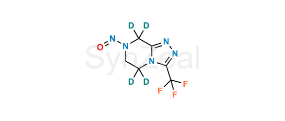 N-Nitroso Sitagliptin D4 is chemically 7-Nitroso-3-(trifluoromethyl)-5,6,7,8-tetrahydro-[1,2,4]triazolo[4,3-a]pyrazine-5,5,8,8-d4. N-Nitroso Sitagliptin D4 is supplied with detailed characterization data compliant with regulatory guideline. N-Nitroso Sitagliptin D4 can be used for the analytical method development, method validation (AMV), Quality Controlled (QC) application for Abbreviated New Drug Application (ANDA) or during commercial production of Sitagliptin.