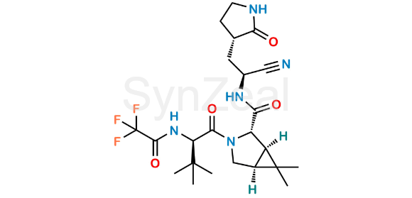 Nirmatrelvir Impurity 35 is chemically (1R,2S,5S)-N-((S)-1-cyano-2-((S)-2-oxopyrrolidin-3-yl)ethyl)-3-((R)-3,3-dimethyl-2-(2,2,2-trifluoroacetamido)butanoyl)-6,6-dimethyl-3-azabicyclo[3.1.0]hexane-2-carboxamide. Nirmatrelvir Impurity 35 is supplied with detailed characterization data compliant with regulatory guideline. Nirmatrelvir Impurity 35 can be used for the analytical method development, method validation (AMV), Quality Controlled (QC) application for Abbreviated New Drug Application (ANDA) or during commercial production of Nirmatrelvir.
