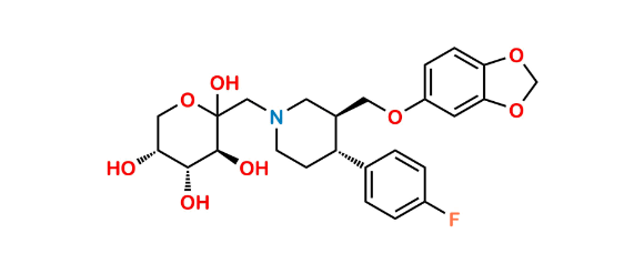 Chemical Name: (3S,4R,5R)-2-(((3S,4R)-3-((benzo[d][1,3]dioxol-5-yloxy)methyl)-4-(4-fluorophenyl)piperidin-1-yl)methyl)tetrahydro-2H-pyran-2,3,4,5-tetraol