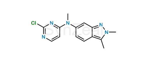 Pazopanib Chloro Impurity is chemically N-(2-Chloropyrimidin-4-yl)-N,2,3-trimethyl-2H-indazol-6-amine. Pazopanib Chloro Impurity is supplied with detailed characterization data compliant with regulatory guideline. Pazopanib Chloro Impurity can be used for the analytical method development, method validation (AMV), Quality Controlled (QC) application for Abbreviated New Drug Application (ANDA) or during commercial production of Pazopanib.