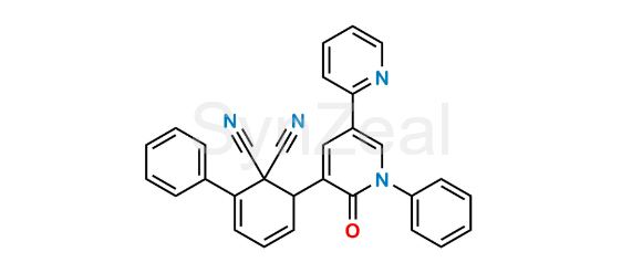 Perampanel Impurity 20 is chemically 3-(6'-oxo-1'-phenyl-1',6'-dihydro-[2,3'-bipyridin]-5'-yl)-[1,1'-biphenyl]-2,2(3H)-dicarbonitrile. Perampanel Impurity 20 is supplied with detailed characterization data compliant with regulatory guideline. Perampanel Impurity 20 can be used for the analytical method development, method validation (AMV), Quality Controlled (QC) application for Abbreviated New Drug Application (ANDA) or during commercial production of Perampanel.