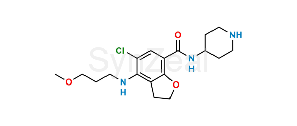 Prucalopride Impurity 39 is chemically 5-Chloro-4-((3-methoxypropyl)amino)-N-(piperidin-4-yl)-2,3-dihydrobenzofuran-7-carboxamide. Prucalopride Impurity 39 is supplied with detailed characterization data compliant with regulatory guideline. Prucalopride Impurity 39 can be used for the analytical method development, method validation (AMV), Quality Controlled (QC) application for Abbreviated New Drug Application (ANDA) or during commercial production of Prucalopride.