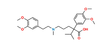 (R)-Verapamilic Acid is chemically (R)-4-Cyano-4-(3,4-dimethoxyphenyl)-5-methylhexanoic acid. (R)-Verapamilic Acid is supplied with detailed characterization data compliant with regulatory guideline. (R)-Verapamilic Acid can be used for the analytical method development, method validation (AMV), Quality Controlled (QC) application for Abbreviated New Drug Application (ANDA) or during commercial production of Verapamil.