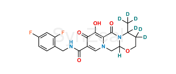 Racemic Dolutegravir D6 is chemically N-(2,4-difluorobenzyl)-7-hydroxy-4-(methyl-d3)-6,8-dioxo-3,4,6,8,12,12a-hexahydro-2H-pyrido[1',2':4,5]pyrazino[2,1-b][1,3]oxazine-3,3,4-d3-9-carboxamide. Racemic Dolutegravir D6 is supplied with detailed characterization data compliant with regulatory guideline. Racemic Dolutegravir D6 can be used for the analytical method development, method validation (AMV), Quality Controlled (QC) application for Abbreviated New Drug Application (ANDA) or during commercial production of Dolutegravir.