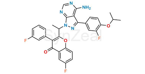 Chemical Name: 2-(1-(4-Amino-3-(3-fluoro-4-isopropoxyphenyl)-1H-pyrazolo[3,4-d]pyrimidin-1-yl)ethyl)-6-fluoro-3-(3-fluorophenyl)-4H-chromen-4-one