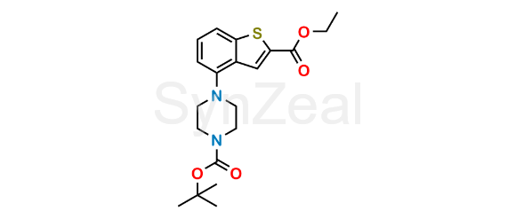 Raloxifene Impurity 10 is chemically tert-butyl 4-(2-(ethoxycarbonyl)benzo[b]thiophen-4-yl)piperazine-1-carboxylate. Raloxifene Impurity 10 is supplied with detailed characterization data compliant with regulatory guideline. Raloxifene Impurity 10 can be used for the analytical method development, method validation (AMV), Quality Controlled (QC) application for Abbreviated New Drug Application (ANDA) or during commercial production of Raloxifene.