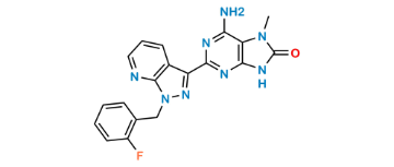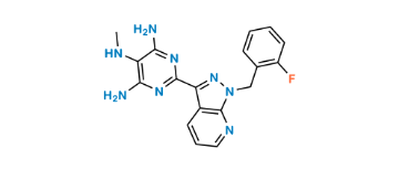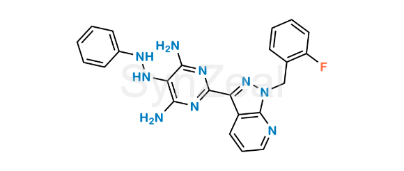 Riociguat Impurity 3 is chemically 2-(1-(2-fluorobenzyl)-1H-pyrazolo[3,4-b]pyridin-3-yl)-5-(2-phenylhydrazinyl)pyrimidine-4,6-diamine. Riociguat Impurity 3 is supplied with detailed characterization data compliant with regulatory guideline. Riociguat Impurity 3 can be used for the analytical method development, method validation (AMV), Quality Controlled (QC) application for Abbreviated New Drug Application (ANDA) or during commercial production of Riociguat.
