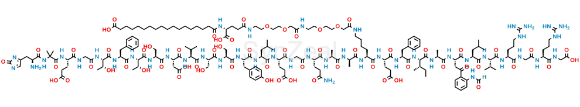 Smiles: N[C@@H](CC(C=N1)=NC1=O)C(NC(C)(C)C(N[C@H](C(NCC(N[C@@H]([C@H](O)C)C(N[C@@H](CC2=CC=CC=C2)C(N[C@@H]([C@H](O)C)C(N[C@@H](CO)C(N[C@@H](CC(O)=O)C(N[C@@H](C(C)C)C(N[C@@H](CO)C(N[C@@H](CO)C(N[C@H](C(N[C@H](C(N[C@H](C(NCC(N[C@H](C(N[C@H](C(N[C@@H](C(N[C@H](C(N[C@H](C(N[C@H](C(N[C@H](C(N[C@H](C(N[C@H](C(N[C@H](C(N[C@H](C(N[C@H](C(NCC(N[C@H](C(NCC(O)=O)=O)CCCNC(N)=N)=O)=O)CCCNC(N)=N)=O)C(C)C)=O)CC(C)C)=O)CC(C3=C(NC([H])=O)C=CC=C3)=O)=O)C)=O)[C@H](CC)C)=O)CC4=CC=CC=C4)=O)CCC(O)=O)=O)CCCCNC(COCCOCCNC(COCCOCCNC(CC[C@@H](NC(CCCCCCCCCCCCCCCCC(O)=O)=O)C(O)=O)=O)=O)=O)=O)C)=O)C)=O)CCC(N)=O)=O)=O)CCC(O)=O)=O)CC(C)C)=O)CC5=CC=C(C=C5)O)=O)=O)=O)=O)=O)=O)=O)=O)=O)=O)CCC(O)=O)=O)=O