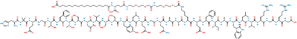 Smiles: N[C@@H](CC1=CNC=N1)C(NC(C(N[C@H](C(NCC(N[C@@H]([C@H](O)C)C(N[C@@H](CC2=CC=CC=C2)C(N[C@@H]([C@H](O)C)C(N[C@@H](CO)C(N[C@@H](CC(O)=O)C(N[C@@H](C(C)C)C(N[C@@H](CO)C(N[C@@H](CO)C(N[C@H](C(N[C@H](C(N[C@H](C(NCC(N[C@H](C(N[C@H](C(N[C@@H](C(N[C@H](C(N[C@H](C(N[C@H](C(N[C@H](C(N[C@H](C(N[C@H](C(N[C@H](C(N[C@H](C(N[C@H](C(NCC(N[C@H](C(NCC(O)=O)=O)CCCNC(N)=N)=O)=O)CCCNC(N)=N)=O)C(C)C)=O)CC(C)C)=O)CC3C(NC4=C3C=CC=C4)=O)=O)C)=O)[C@H](CC)C)=O)CC5=CC=CC=C5)=O)CCC(O)=O)=O)CCCCNC(COCCOCCNC(COCCOCCNC(CC[C@@H](NC(CCCCCCCCCCCCCCCCC(O)=O)=O)C(O)=O)=O)=O)=O)=O)C)=O)C)=O)CCC(N)=O)=O)=O)CCC(O)=O)=O)CC(C)C)=O)CC6=CC=C(C=C6)O)=O)=O)=O)=O)=O)=O)=O)=O)=O)=O)CCC(O)=O)=O)(C)C)=O