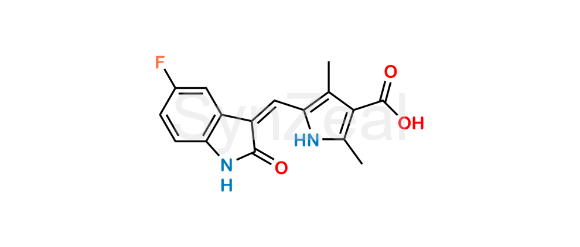 Sunitinib Carboxylic Acid Impurity is chemically 5-(5-Fluoro-2-oxo-1,2-dihydro-indol-3-ylidenemethyl)-2,4-dimethyl-1H-pyrrole-3-carboxylic acid ;. Sunitinib Carboxylic Acid Impurity is supplied with detailed characterization data compliant with regulatory guideline. Sunitinib Carboxylic Acid Impurity can be used for the analytical method development, method validation (AMV), Quality Controlled (QC) application for Abbreviated New Drug Application (ANDA) or during commercial production of Sunitinib .