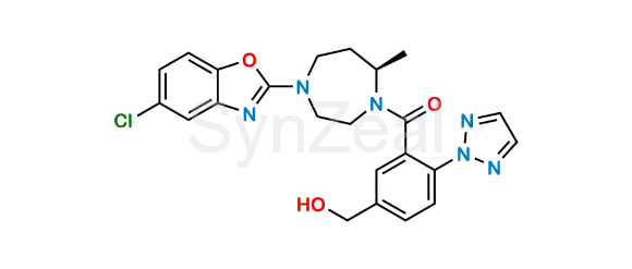 Suvorexant Metabolite M9 is chemically (R)-(4-(5-chlorobenzo[d]oxazol-2-yl)-7-methyl-1,4-diazepan-1-yl)(5-(hydroxymethyl)-2-(2H-1,2,3-triazol-2-yl)phenyl)methanone. Suvorexant Metabolite M9 is supplied with detailed characterization data compliant with regulatory guideline. Suvorexant Metabolite M9 can be used for the analytical method development, method validation (AMV), Quality Controlled (QC) application for Abbreviated New Drug Application (ANDA) or during commercial production of Suvorexant.