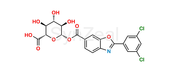 Tafamidis Acyl Glucuronide is chemically (2S,3S,4S,5R,6S)-6-((2-(3,5-Dichlorophenyl)benzo[d]oxazole-6-carbonyl)oxy)-3,4,5-trihydroxytetrahydro-2H-pyran-2-carboxylic acid. Tafamidis Acyl Glucuronide is supplied with detailed characterization data compliant with regulatory guideline. Tafamidis Acyl Glucuronide can be used for the analytical method development, method validation (AMV), Quality Controlled (QC) application for Abbreviated New Drug Application (ANDA) or during commercial production of Tafamidis.