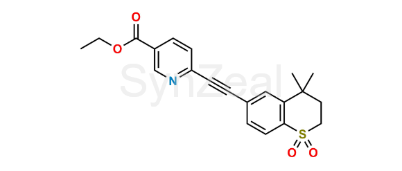 Tazarotene Sulfone is chemically 6-(4,4-Dimethyl-1,1-dioxo-thiochroman-6-ylethynyl)-nicotinic acid ethyl ester . Tazarotene Sulfone is supplied with detailed characterization data compliant with regulatory guideline. Tazarotene Sulfone can be used for the analytical method development, method validation (AMV), Quality Controlled (QC) application for Abbreviated New Drug Application (ANDA) or during commercial production of Tazarotene.