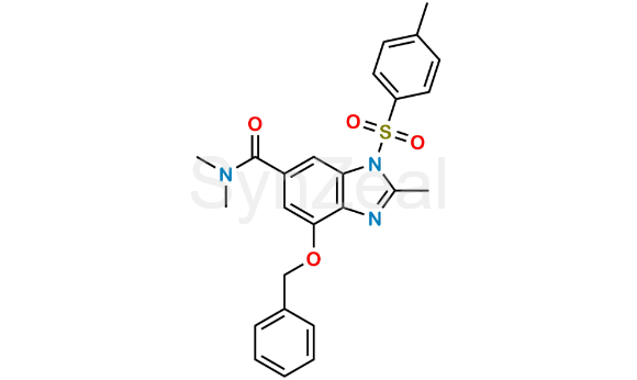 Tegoprazan Impurity 25 is chemically 4-(Benzyloxy)-N,N,2-trimethyl-1-tosyl-1H-benzo[d]imidazole-6-carboxamide. Tegoprazan Impurity 25 is supplied with detailed characterization data compliant with regulatory guideline. Tegoprazan Impurity 25 can be used for the analytical method development, method validation (AMV), Quality Controlled (QC) application for Abbreviated New Drug Application (ANDA) or during commercial production of Tegoprazan.