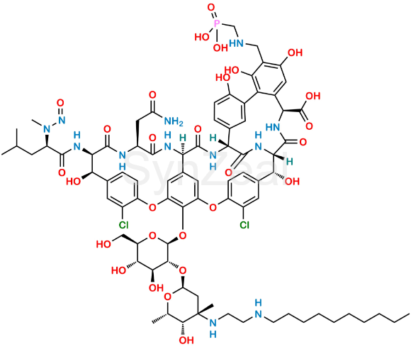 Smiles: ClC1=CC([C@H]([C@H](C(N[C@H](C(N[C@@]2([H])C(N[C@]3([H])C4=CC=C(O)C(C5=C(O)C(CNCP(O)(O)=O)=C(O)C=C5[C@H](NC([C@](NC3=O)([H])[C@@H](C6=CC=C(O7)C(Cl)=C6)O)=O)C(O)=O)=C4)=O)=O)CC(N)=O)=O)NC([C@H](N(N=O)C)CC(C)C)=O)O)=CC=C1OC8=C(C7=CC2=C8)O[C@H]9[C@@H]([C@H]([C@@H]([C@H](O9)CO)O)O)O[C@H]%10C[C@@](C)([C@@H]([C@@H](O%10)C)O)NCCNCCCCCCCCCC