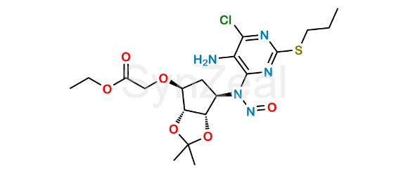 Chemical Name: Ethyl 2-(((3aR,4S,6R,6aS)-6-((5-amino-6-chloro-2-(propylthio)pyrimidin-4-yl)(nitroso)amino)-2,2-dimethyltetrahydro-4H-cyclopenta[d][1,3]dioxol-4-yl)oxy)acetate