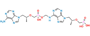 Tri-POC Tenofovir Dimer is chemically 5-[[(1R)-2-[6-[[[[9-[(2R)-5-Hydroxy-2,11-dimethyl-5-oxido-9-oxo-3,6,8,10-tetraoxa-5-phosphadodec-1-yl]-9H-purin-6-yl]amino]methyl]amino]-9H-purin-9-yl]-1-methylethoxy]methyl]-2,4,6,8-tetraoxa-5-phosphanonanedioic Acid 1,9-Bis(1-methylethyl) Ester 5-Oxide;. It is also known as Tenofovir Disoproxil Fumarate IP Impurity I. Tri-POC Tenofovir Dimer is supplied with detailed characterization data compliant with regulatory guideline. Tri-POC Tenofovir Dimer can be used for the analytical method development, method validation (AMV), Quality Controlled (QC) application for Abbreviated New Drug Application (ANDA) or during commercial production of Tenofovir.