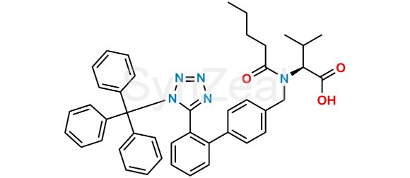 Trityl Valsartan is chemically N-pentanoyl-N-((2'-(1-trityl-1H-tetrazol-5-yl)-[1,1'-biphenyl]-4-yl)methyl)-L-valine. Trityl Valsartan is supplied with detailed characterization data compliant with regulatory guideline. Trityl Valsartan can be used for the analytical method development, method validation (AMV), Quality Controlled (QC) application for Abbreviated New Drug Application (ANDA) or during commercial production of Valsartan .