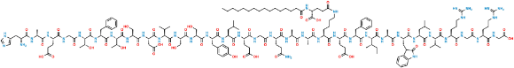 Smiles: N[C@H](C(N[C@H](C(N[C@H](C(NCC(N[C@H](C(N[C@@H](CC1=CC=CC=C1)C(N[C@H](C(N[C@H](C(N[C@H](C(N[C@H](C(N[C@H](C(N[C@H](C(N[C@H](C(N[C@H](C(N[C@H](C(NCC(N[C@H](C(N[C@H](C(N[C@H](C(N[C@H](C(N[C@H](C(N[C@@H](CC2=CC=CC=C2)C(N[C@H](C(N[C@H](C(N[C@H](C(N[C@H](C(N[C@H](C(N[C@H](C(NCC(N[C@H](C(NCC(O)=O)=O)CCCNC(N)=N)=O)=O)CCCNC(N)=N)=O)C(C)C)=O)CC(C)C)=O)CC3C(NC4=C3C=CC=C4)=O)=O)C)=O)[C@@H](C)CC)=O)=O)CCC(O)=O)=O)CCCCNC(CC[C@H](C(O)=O)NC(CCCCCCCCCCCCCCC)=O)=O)=O)C)=O)C)=O)CCC(N)=O)=O)=O)CCC(O)=O)=O)CC(C)C)=O)CC5=CC=C(O)C=C5)=O)CO)=O)CO)=O)C(C)C)=O)CC(O)=O)=O)CO)=O)[C@@H](C)O)=O)=O)[C@@H](C)O)=O)=O)CCC(O)=O)=O)C)=O)CC6=CN=CN6