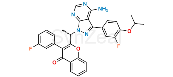 Chemical Name: (S)-2-(1-(4-amino-3-(3-fluoro-4-isopropoxyphenyl)-1H-pyrazolo[3,4-d]pyrimidin-1-yl)ethyl)-3-(3-fluorophenyl)-4H-chromen-4-one