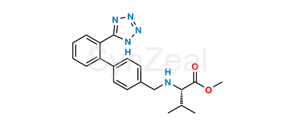 Valsartan Desvaleryl Methyl Ester is chemically (S)-N-(1-Methoxycarbonyl-2-methylprop-1-yl)-N-[2′-(1H-tetrazol-5-yl)-biphenyl-4-ylmethyl]amine. Valsartan Desvaleryl Methyl Ester is supplied with detailed characterization data compliant with regulatory guideline. Valsartan Desvaleryl Methyl Ester can be used for the analytical method development, method validation (AMV), Quality Controlled (QC) application for Abbreviated New Drug Application (ANDA) or during commercial production of Valsartan .