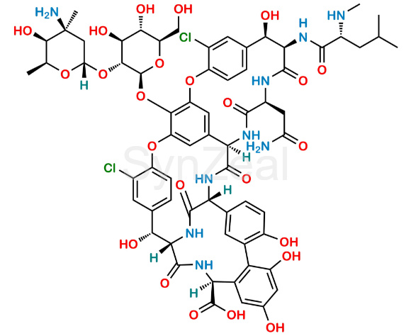 Smiles: O[C@@H]1[C@@H](O[C@@](O[C@@H](C)[C@H]2O)([H])C[C@@]2(N)C)[C@@H](O[C@H](CO)[C@H]1O)OC3=C(OC4=CC=C([C@H]([C@H]5NC([C@H](NC)CC(C)C)=O)O)C=C4Cl)C=C([C@](NC([C@@H](NC5=O)CC(N)=O)=O)([H])C(N[C@](C6=O)([H])C7=CC8=C(O)C=C7)=O)C=C3OC9=CC=C([C@H]([C@](C(N[C@@](C(O)=O)([H])C%10=C8C(O)=CC(O)=C%10)=O)([H])N6)O)C=C9Cl