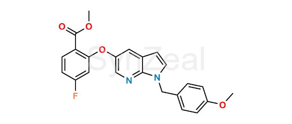 Venetoclax Impurity 37 is chemically Methyl 4-fluoro-2-((1-(4-methoxybenzyl)-1H-pyrrolo[2,3-b]pyridin-5-yl)oxy)benzoate. Venetoclax Impurity 37 is supplied with detailed characterization data compliant with regulatory guideline. Venetoclax Impurity 37 can be used for the analytical method development, method validation (AMV), Quality Controlled (QC) application for Abbreviated New Drug Application (ANDA) or during commercial production of Venetoclax.