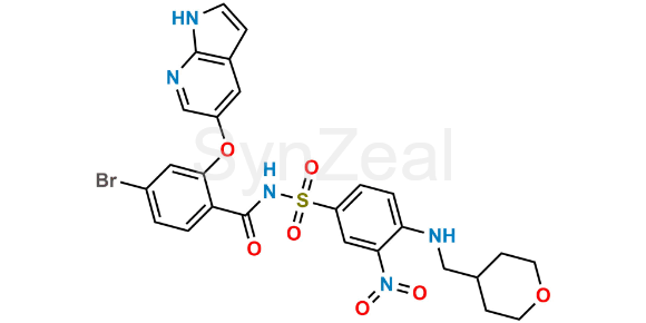 Venetoclax Impurity 39 is chemically 2-((1H-Pyrrolo[2,3-b]pyridin-5-yl)oxy)-4-bromo-N-((3-nitro-4-(((tetrahydro-2H-pyran-4-yl)methyl)amino)phenyl)sulfonyl)benzamide. Venetoclax Impurity 39 is supplied with detailed characterization data compliant with regulatory guideline. Venetoclax Impurity 39 can be used for the analytical method development, method validation (AMV), Quality Controlled (QC) application for Abbreviated New Drug Application (ANDA) or during commercial production of Venetoclax.