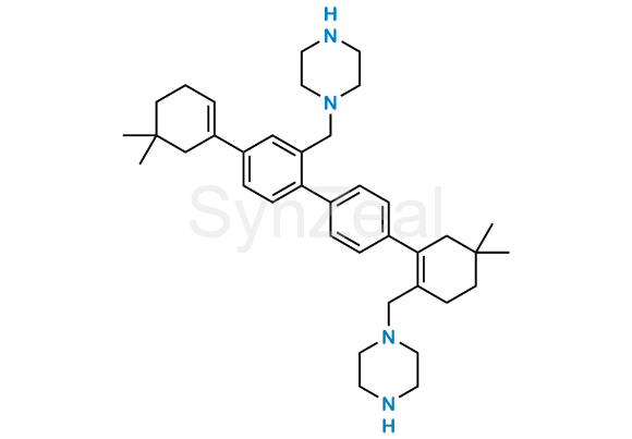 Venetoclax Impurity 44 is chemically 1,1'-((3''',3''',5,5-Tetramethyl-2''',3,3''',4,4''',5,5''',6-octahydro-[1,1':4',1'':4'',1'''-quaterphenyl]-2,2''-diyl)bis(methylene))dipiperazine. Venetoclax Impurity 44 is supplied with detailed characterization data compliant with regulatory guideline. Venetoclax Impurity 44 can be used for the analytical method development, method validation (AMV), Quality Controlled (QC) application for Abbreviated New Drug Application (ANDA) or during commercial production of Venetoclax.