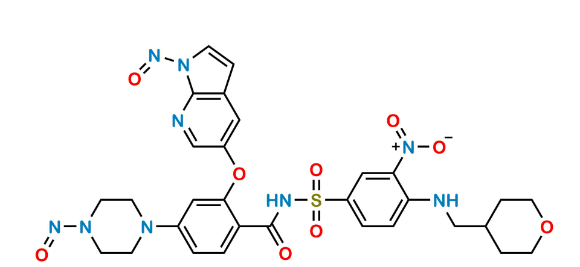 Venetoclax Nitroso Impurity 16 is chemically N-((3-Nitro-4-(((tetrahydro-2H-pyran-4-yl)methyl)amino)phenyl)sulfonyl)-2-((1-nitroso-1H-pyrrolo[2,3-b]pyridin-5-yl)oxy)-4-(4-nitrosopiperazin-1-yl)benzamide. Venetoclax Nitroso Impurity 16 is supplied with detailed characterization data compliant with regulatory guideline. Venetoclax Nitroso Impurity 16 can be used for the analytical method development, method validation (AMV), Quality Controlled (QC) application for Abbreviated New Drug Application (ANDA) or during commercial production of Venetoclax.