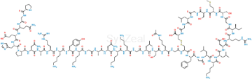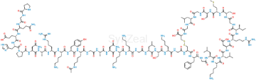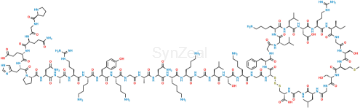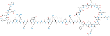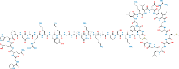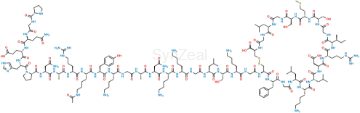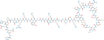 Chemical Name: (4R,10S,16S,19S,22S,28S,31S,34S,37S,40S,43S,49S,52R)-52-(2-((S)-2-((S)-2-((S)-2-(2-((S)-2-((S)-2-((S)-2-((S)-2-(2-((S)-2-((S)-2-((S)-2-((S)-2-((S)-2-((S)-2-((S)-1-(L-prolylglycyl-L-glutaminyl-L-glutamyl-L-histidyl)pyrrolidine-2-carboxamido)-4-amino-4-oxobutanamido)propanamido)-5-guanidinopentanamido)-6-acetamidohexanamido)-3-(4-hydroxyphenyl)propanamido)-6-aminohexanamido)acetamido)propanamido)-4-amino-4-oxobutanamido)-6-aminohexanamido)-6-aminohexanamido)acetamido)-4-methylpentanamido)-3-hydroxypropanamido)-6-aminohexanamido)acetamido)-40-(4-aminobutyl)-49-benzyl-28-((S)-sec-butyl)-34-(carboxymethyl)-31-(3-guanidinopropyl)-16,22-bis(hydroxymethyl)-10,37,43-triisobutyl-19-(2-(methylthio)ethyl)-6,9,12,15,18,21,24,27,30,33,36,39,42,45,48,51-hexadecaoxo-1,2-dithia-5,8,11,14,17,20,23,26,29,32,35,38,41,44,47,50-hexadecaazacyclotripentacontane-4-carboxylic acid