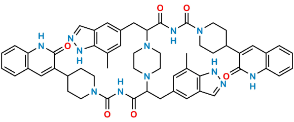 Chemical Name: N,N'-(2,2'-(Piperazine-1,4-diyl)bis(3-(7-methyl-1H-indazol-5-yl)propanoyl))bis(4-(2-oxo-1,2-dihydroquinolin-3-yl)piperidine-1-carboxamide)